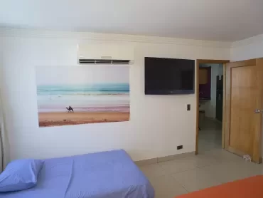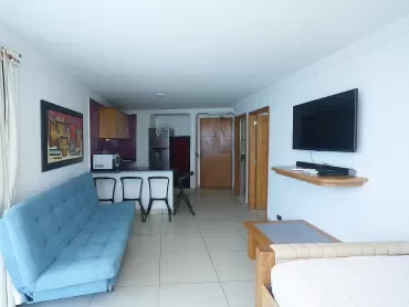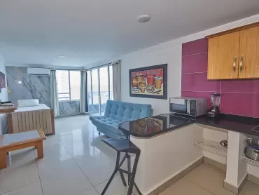 Lindo apartamento de 1 alcoba en el piso 19 con excelente vista al mar y lago.