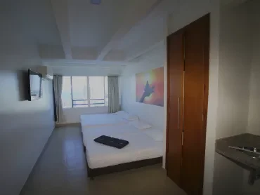 Balcon amplio, cocina completa, 2 baños, 2 aires, 3 televisores, equipo de música…..